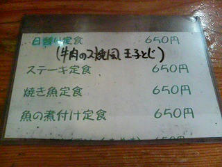 定食が4つあって全部650円となかなかリーズナブルなお店です。