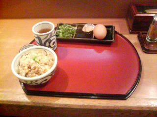 まずはかやくご飯と薬味等々が出てきました。